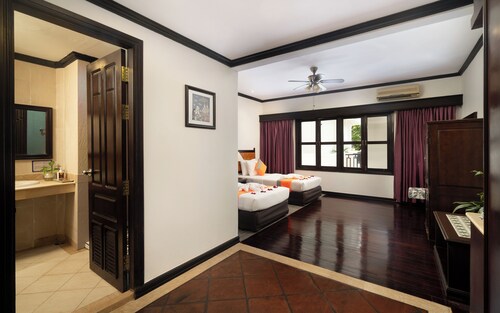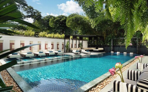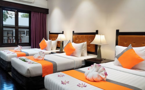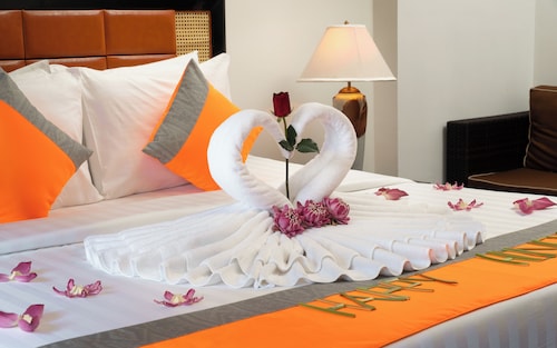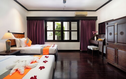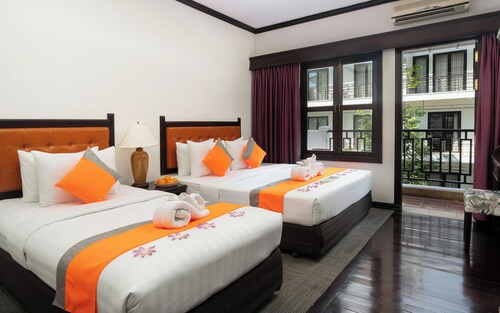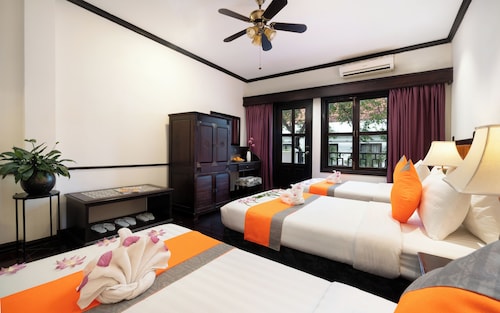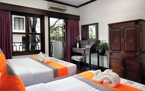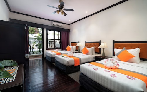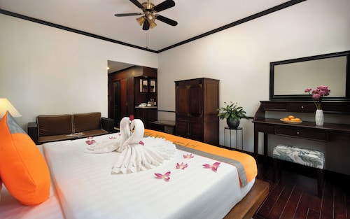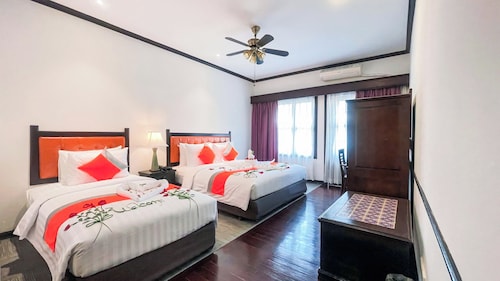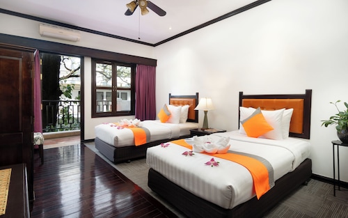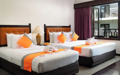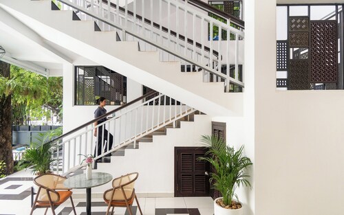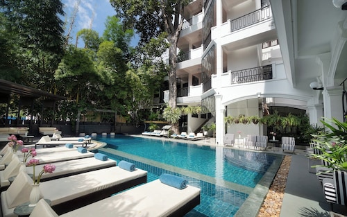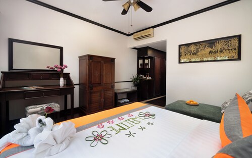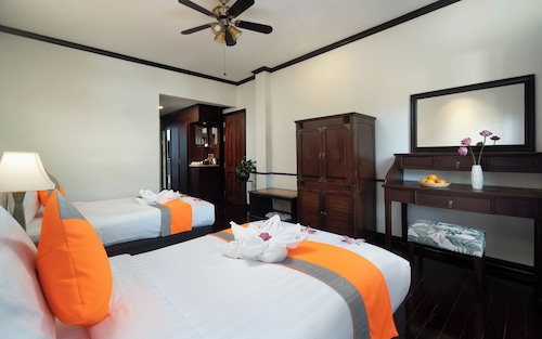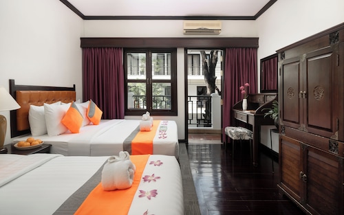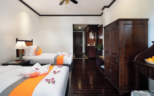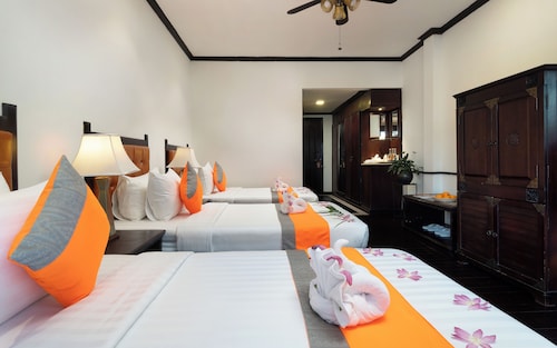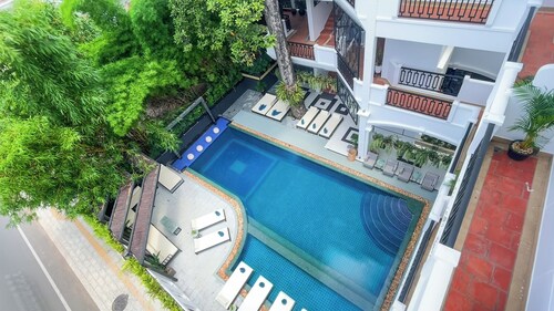 シェムリアップ中心部に位置するこのホテルは、ラッキー モールおよびパブ ストリートから徒歩 10 分圏内です。ロイヤル ガーデンおよびシャルル ド ゴール通りも 5 分圏内です。 このホテルには、屋外プール、レストラン、およびフィットネスセンターがあります。共用エリアでの WiFi (無料)および セルフパーキング (無料)もご利用いただけます。その他の設備には、バー / ラウンジ、スチームサウナ、およびスパサービスがあります。 客室清掃はリクエストにより行われます。
