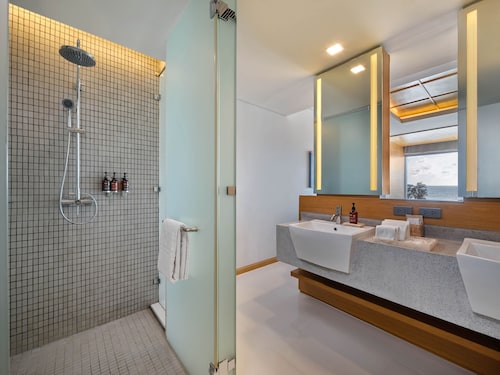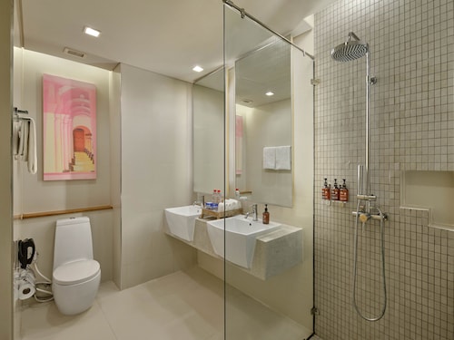 どこに行くにも便利で、まだ新しいのでホテル内もキレイで広々としており、パトンビーチにありながらもどこか都会の雰囲気を味合わせてくれるそんなホテルです♪バングラ通りまで徒歩1分、パトンビーチまで徒歩3分の好ロケーションです♪ホテル併設のKEE Plazaというショッピングモールもあり、バングラ通りに出てもレストランやショッピングセンターがあり、ビーチロードに出てもレストランやマッサージ店などが立ち並び滞在中困ることなしのロケーションです♪お部屋のテレビとパソコンキーボートがあります。ホテル内は、Wifiフリーでテレビとキーボートがパソコン代わりとして使えるとのことです。ルームサービスのオーダーなどをした場合に、チェックアウトの際に支払わないといけない料金をこちらのテレビ兼パソコン画面で確認することが出来ます。プーケットでは、The KEEのみとのこと。デラックスプールアクセスのお部屋が、お部屋の広さは程よくバスタブもあるし、目の前のプールでのんびり出来るのでお勧めです♪プラザタイプのお部屋以外は、バスタブがあります。バスタブとシャワーブースが分かれており、洗面台はバスルームとは別に入り口の左手にありました。