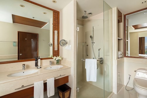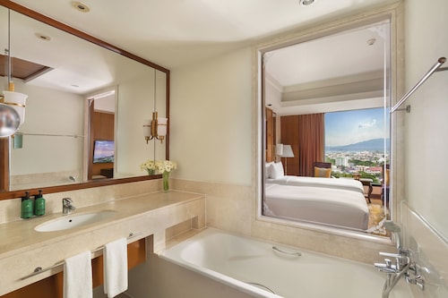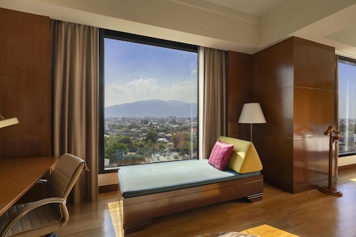 5つ星ホテルとありロビーも豪華。プールもチェンマイの中ではなかなかの広さを誇ります。お部屋もデラックスルームで43㎡と、ゆったりとした造りです。窓がかなり大きく、ほぼ足元まであるので、実際の広さよりももっと広いと感じました。