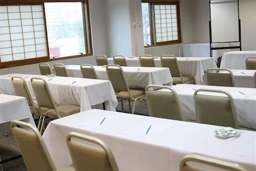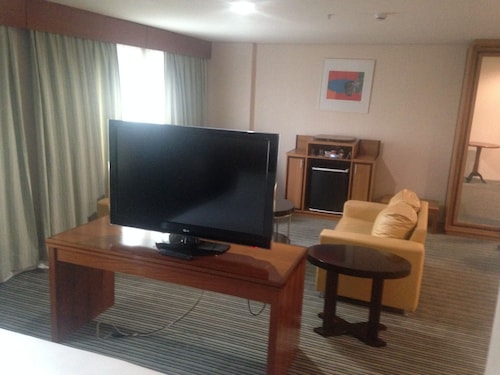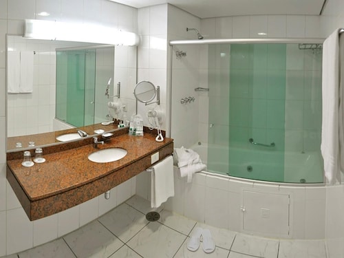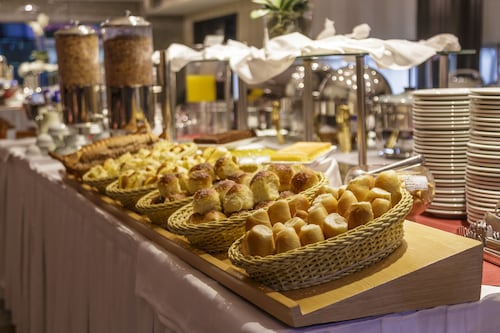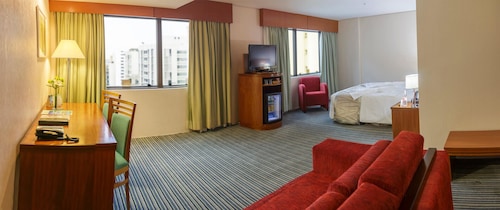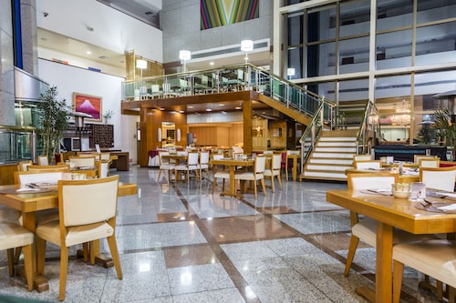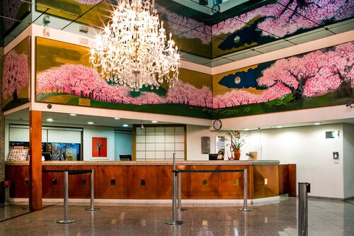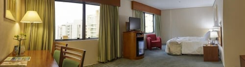 サンパウロの中心地からは少し離れた場所にあるこちらのホテルは、パウリスタ通りから徒歩15分、地下鉄パライゾ駅から徒歩10分というロケーションです。ホテルに入るとまずはデスクレセプションの桜と富士山の絵が目に飛び込んできます。フロント以外にも和のテイストが至る所に取り入れられていて、日本のちょっと古いタイプのビジネスホテルのようです。ブラジルの日系人の歴史を垣間見ることができるホテルと言っても良いかもしれません。ゲストの30%程度が日本人ビジネスマンというこちらのホテルでは日本人向けのサービスがたくさんあります。フロントには24時間日本語対応可能なスタッフがいるので言葉の心配はありません。また、ロビーには日本語の新聞が常備されていますし、部屋ではNHKの視聴も可能です。日本人ゲストには客室に緑茶のサービスがある他、ほとんどのものがポルトガル語、英語、日本語で表記されています。ブラジルでは非常に珍しく、客室のトイレに温水洗浄便座が付いているのも日本人ゲストを意識してのサービスです。こちらのホテル内には2つのレストランがあります。2階の寿司バーはまるで日本の居酒屋のような雰囲気です。メニューは、お寿司はもちろん
