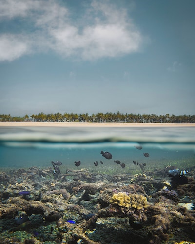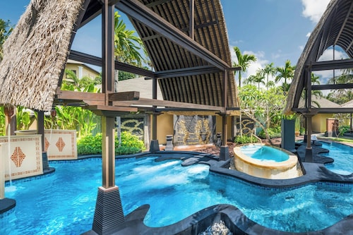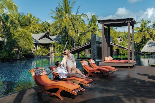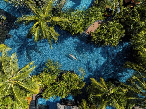 特にラグーンヴィラがおすすめで、リゾート内に広がる美しいターコイズ色のラグーンにベランダから直接アクセスすることができます。水が流れ落ちる壁や石のチェアなどところどころ芸術的なモチーフが配置されているラグーンはまるでジャングルの中の川のようにゆったりと流れ、開放感がさらに増します。
