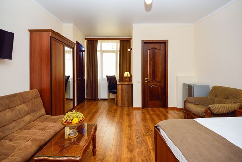オールド トビリシに位置するこのホテルは、トビリシ オペラ バレエ劇場、グルジア国立博物館、ガレリア トビリシから 2 km 圏内です。シャルデニ通りおよび至聖三者大聖堂も 5 km 圏内です。地下鉄 ルスタヴェリ駅まで徒歩 7 分、ティビリシ ケーブルカーまで徒歩 14 分です。 共用エリアでのコーヒー / ティーサービス、24 時間対応のルームサービス、およびコンシェルジュ サービスがある禁煙のホテルです。共用エリアでの WiFi (無料)および バレーパーキング (無料)もご利用いただけます。その他に、敷地内にはドライクリーニング、ランドリー設備、および24 時間対応フロントデスクがあります。