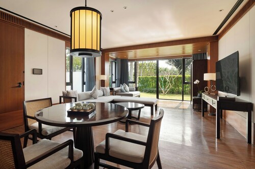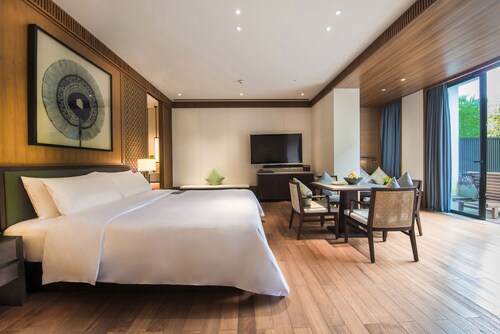 ビーチに位置する、万寧のこのホテルは、石梅湾および加井島から 2 km 圏内です。日月灣および神龜山も 15 km 圏内です。 ビーチで日差しを浴び、ル メリディアン石梅湾ビーチ リゾート & スパ (石梅湾艾美度假酒店)のフルサービス スパでくつろいだりして過ごしたら、ホテルにある 5 か所のレストランで食事をお楽しみください。 客室清掃はリクエストにより行われます。