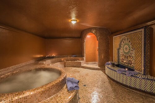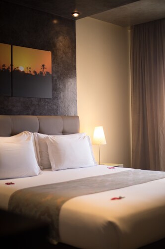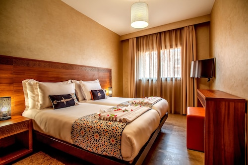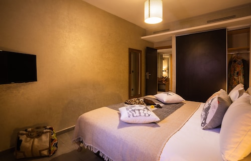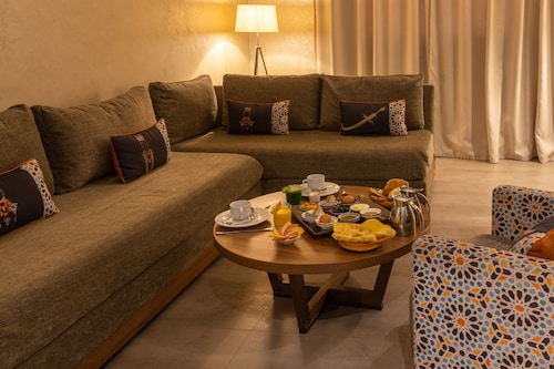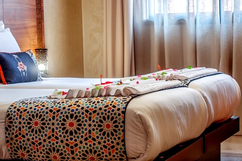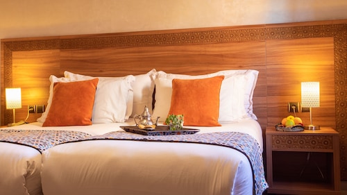 グエリズに位置するこのスパ付きホテルは、サイバーパークおよびジャマ エル フナから 2 km 圏内です。マジョレル庭園まで 2.1 km です。 マラケシュ中央駅まで徒歩わずか 20 分です。 フルサービス スパのほか、このホテルには屋外プールおよびレストランがあります。共用エリアでの WiFiは無料です。 その他に、敷地内にはフィットネスセンター、バー / ラウンジ、およびプールサイドバーがあります。