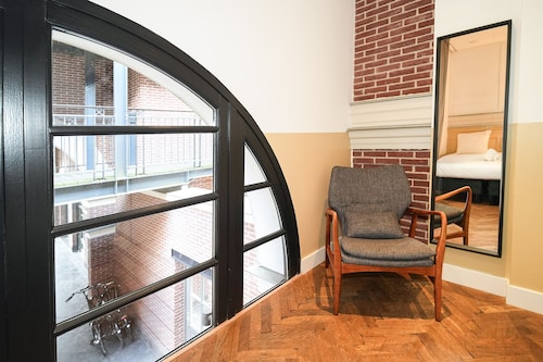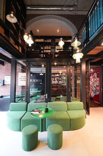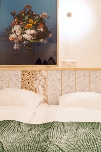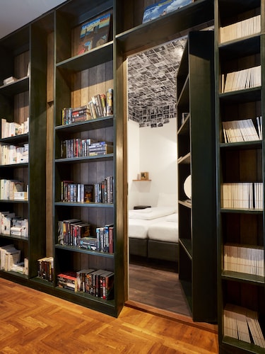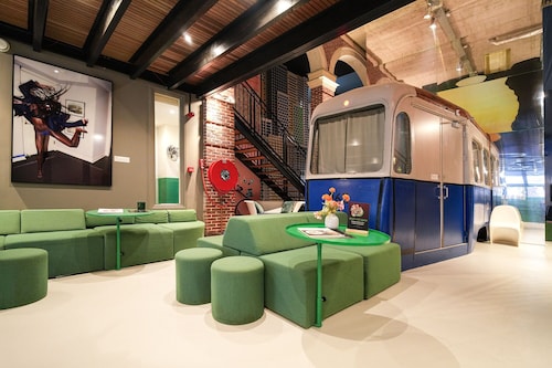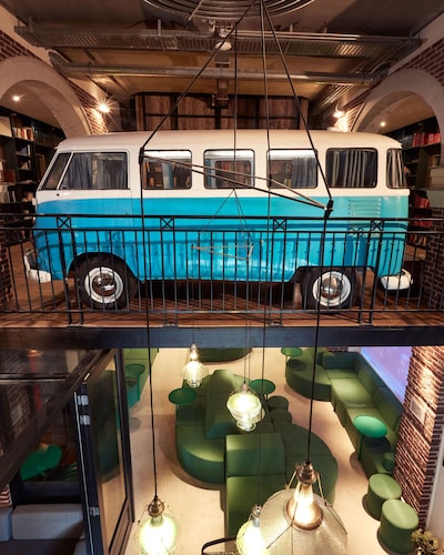 「ホテルではない、ホテル」というユニークな名前のとおり、どちらかといえば若年層にウケそうなアパートメント・ホテル。ドミトリー(寮)という雰囲気も持ち合わせている、そんなカジュアルなホテルです。古いトラム(路面電車)を改造し、ホテルの一室として使用しているのがウリで、「トラムの中で寝られる!」と謳ったキャッチフレーズと共に、国内外で紹介され話題になったホテルでもあります。ロケーションも最高!スキポール空港からも列車で10分、アムステルダム中央駅からトラムで5分しかかかりません。常に賑わうショッピング・ストリート、キンケル通りへも歩いて5分ですし、アムステルダム国立美術館やファン・ゴッホ美術館など、美術館や博物館が集まるミュージアム・プレイン(広場)まで徒歩で10分です。ホテル全体のイメージは、「リビングルーム(居間)」。それだけに、壁一面にはアート作品が飾られ、ゆったりとしたカウチに座れば自宅でくつろいでいるような心地よさが感じられるでしょう。各客室も、これまたユニーク。前述のトラム部屋もそうですが、各客室ごとにコンセプトがあり、図書館を彷彿とさせるような書籍をならべた部屋や、若手アーティストたちの作品を展