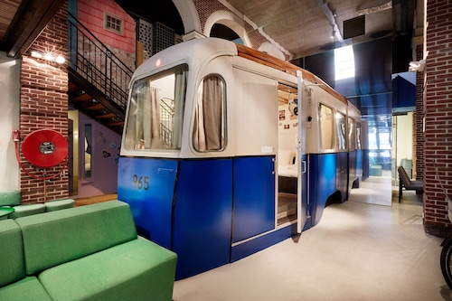 「ホテルではない、ホテル」というユニークな名前のとおり、どちらかといえば若年層にウケそうなアパートメント・ホテル。ドミトリー(寮)という雰囲気も持ち合わせている、そんなカジュアルなホテルです。古いトラム(路面電車)を改造し、ホテルの一室として使用しているのがウリで、「トラムの中で寝られる!」と謳ったキャッチフレーズと共に、国内外で紹介され話題になったホテルでもあります。ロケーションも最高!スキポール空港からも列車で10分、アムステルダム中央駅からトラムで5分しかかかりません。常に賑わうショッピング・ストリート、キンケル通りへも歩いて5分ですし、アムステルダム国立美術館やファン・ゴッホ美術館など、美術館や博物館が集まるミュージアム・プレイン(広場)まで徒歩で10分です。