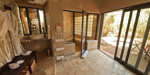 州立公園内にあるこのオールインクルーシブロッジは、アフリカン プライド プンバ プライベート ゲーム リザーブから 0.1 km、ラリベラ動物保護区および1820 セトラーズ ナショナル モニュメントから 25 km 圏内です。セトラーズ・ガーデン1820およびローズ大学も 25 km 圏内です。 フルサービス スパ、屋外プール、およびレストランがあるロッジです。イングリッシュ ブレックファスト (無料)、共用エリアでの WiFi (無料)、およびセルフパーキング (無料)もご利用いただけます。その他に、敷地内にはフィットネスセンター、バー / ラウンジ、およびカンファレンス センターがあります。