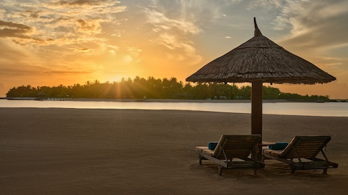 モルディブには多くの外資系チェーンリゾートがありますが、中でも安定の人気を誇るのがタイ系ブランドのアナンタラリゾート。2006年にオープンしたアナンタラ・ディグリゾートは美しいラグーン(浅瀬の海)に囲まれたリゾート。通常モルディブのリゾート滞在では宿泊するリゾート島のみに滞在することになりますが、このリゾートは複数の島を楽しむことができる贅沢な滞在スタイルを提供しています。ディグリゾートは、カップルはもちろんのこと、ファミリーのお客様にも適したリゾート。計110室、9つある部屋のカテゴリーは、様々なお客様の要望に応えられます。サンセットが見えるお部屋、プライベートプール付き、ファミリールームなど、ご自分の滞在スタイルに合うお部屋が選べます。リゾート内には、4つのレストラン・バー、水上スパ、ダイビングセンター、ウォータースポーツ、サーフィンスクール、美しいラグーンに面したインフィニティプールなど、リゾート滞在を飽きさせない施設が揃います。また、ファミリーのお客様には嬉しいキッズクラブも完備。通常であれば、利用できるのはこれらリゾートにある施設のみですが、そうではないのがディグリゾート。同ラグーン内に姉妹リゾ