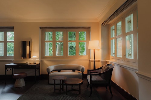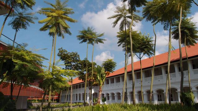 シンガポールに数多くあるホテルの中で、ここはズバリ「一目惚れしたホテル」です。ノスタルジックな白亜の外観のロビー棟と、スタイリッシュな近代的な外観の客室棟が敷地内で見事に調和されています。