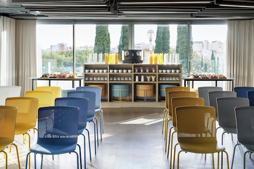 【Wi-Fi全館無料】 バルセロナ最大のターミナル駅、サンツ駅から徒歩約2分に建つ大型ホテル。どこに行くにも便利な立地で、最寄地下鉄SANTS駅から3号線利用でカタルーニャ広場約13分、5号線サグラダファミリアまで約17分とアクセス抜群。また、展示会場(フィラ・デ・バルセロナ Fira de Barcelona)に近く、観光だけでなくビジネスにも最適です。オフィスビルのような外観ですが、客室もとても清潔な雰囲気です。 旧 Expo Hotel Barcelona
