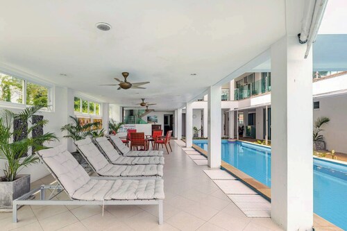 カマラにあるファミリー向けのこのヴィラは、ビーチの近くに位置し、カマラ ビーチ、ビッグCマーケット・カマラ、津波メモリアルから 3 km 圏内です。ラエム シン ビーチおよびフア ビーチも 5 km 圏内です。 屋内プールのほか、このヴィラにはカンファレンス センターおよび会議室があります。共用エリアでの WiFi (無料)および セルフパーキング (無料)もご利用いただけます。その他に、敷地内にはドライクリーニング、ランドリー設備、および24 時間対応フロントデスクがあります。 ヴィラには、ベッドルーム 7 室、WiFi (無料)、DVD プレーヤーが備わっています。プライベートプールをご利用いただけるほか、冷蔵庫とオーブン付きのキッチンも備わっています。