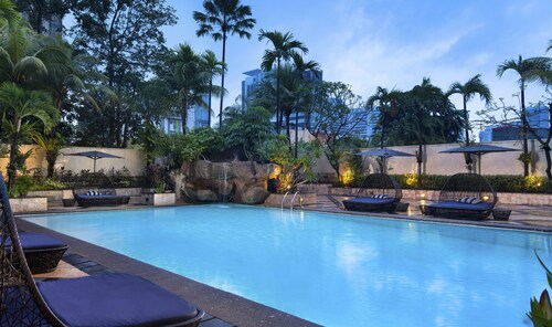 【Wi-Fi全館無料】 ジャカルタ市内中心部に建つ高級ホテル。市内の主要ショッピングモールまで車で5分。伝統的な日本料理が楽しめる日本食レストラン「欅-けやき-」や日本人スタッフが常駐など日本人ゲストが安心して宿泊できるホテル。