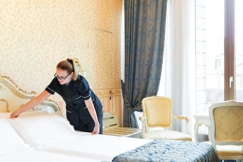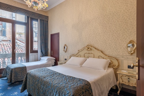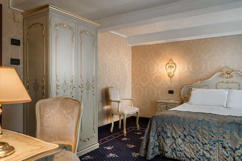 サンマルコ広場から約50m、17世紀の建物をホテルに改築した、ベストウエスタン系の3つ星スタンダードクラスのチェーンホテル。客室は全部で48室で、家具は800年代のベネチアンスタイルです。館内には、お酒を飲みながらリラックスして軽食を楽しめるバー、TVのあるリーディング・ルームがあります。ホテルの隣にある系列のレストラン「アンティーコ・ピニョーロ」は、1930年に開業、世界各地の厳選した900銘柄ものワインを所有するワインセラーが自慢で、世界の一流ワインリストを称賛したBest Award of Excellenceを何年も受賞しています。★客室設備: エアコン、防音設備、シャワー付のバスルーム、電話、衛星テレビ、インターネット接続、金庫、ヘアドライヤー ★アクセス: ベネチア・サンタ・ルチア駅からは、水上バス1番でサン・マルコ・ヴァラレッソ停留所下車(約40分)、空港からは、アリラグーナ社の船でサンマルコ広場まで(約60分)。サンマルコ広場からは、リアルト(Rialto)に向かって時計台の下を歩き、カッレ・ラルガ・サン・マルコ(Calle Larga San Marco)へ右折し、さらに左折し、Call