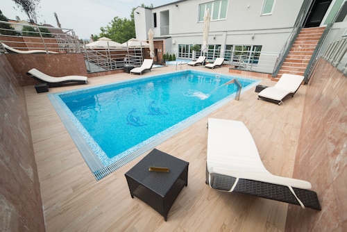 ノヴィ サッド中心部に位置するこの高級ホテルは、聖マリア大聖堂、ノヴィ・サド・シナゴーグ、カラジョルジェ スタジアムから 2 km 圏内です。セルビア国立劇場およびフリーダム スクエアも 3 km 圏内です。 このホテルには、フルサービス スパ、屋内プール、およびレストランがあります。朝食ビュッフェ (無料)、共用エリアでの WiFi (無料)、およびセルフパーキング (無料)もご利用いただけます。その他に、敷地内にはフィットネスセンター、バー / ラウンジ、およびプールサイドバーがあります。