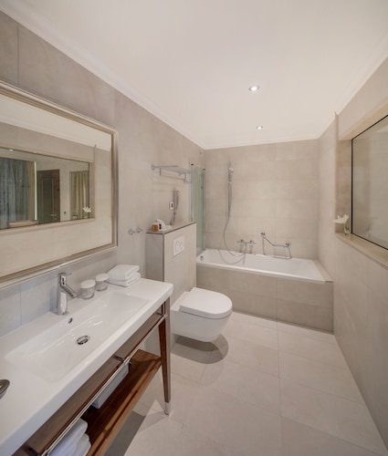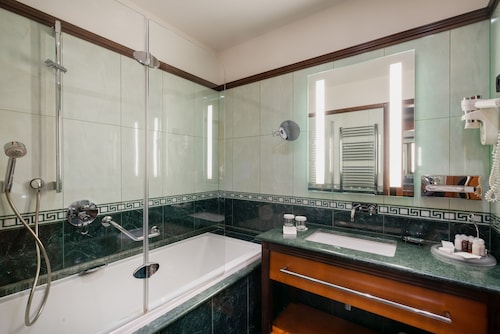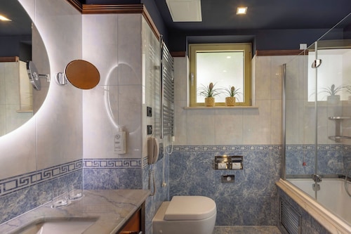 館内の客室はすべてクラシックな内装で広々。無料Wi-Fi、セーフティボックス、ミニバーが付いていて快適です。清潔なバスルームには大理石の大きめのバスタブ、ヘアドライヤー、シャンプー、コンディショナー、シャワージェルなどのバスアメニティー、バスローブ、スリッパなどがあります。