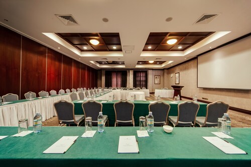 カンパラにあるファミリー向けのこのリゾートは、空港の近くに位置し、レイク・ヴィクトリア・セレナ・ゴルフリゾート&スパおよびヴィクトリア湖から 3 km 圏内です。ナキガララ・ティー・エステートおよびムニョニョ殉教者の聖堂も 10 km 圏内です。 2 か所のレストランのほか、この禁煙のリゾートには、2 つの屋外プールおよびフルサービス スパがあります。共用エリアでの WiFi (無料)および バレーパーキング (無料)もご利用いただけます。その他の設備には、ゴルフコース、フィットネスクラブ (スタッフ常駐)、および バー / ラウンジがあります。