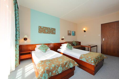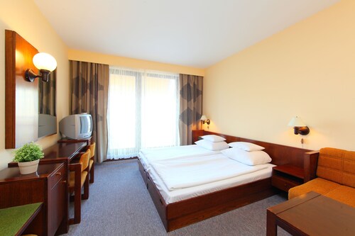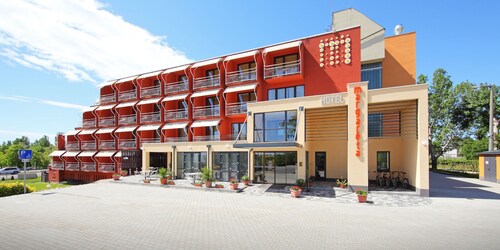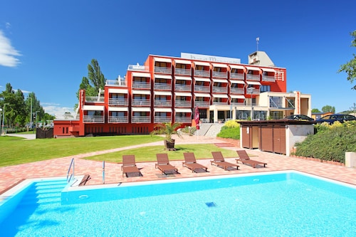 バラトンフレドに位置するこのホテルは、パンノニア (地域)から 0.1 km、ティハニの修道院およびトットザズソニー改革派教会から 15 km 圏内です。ザマールディ フリー ビーチおよびスザントッドプスタ観光文化センターも 15 km 圏内です。Balatonarács Stationまで徒歩わずか 29 分です。 レストラン、屋外プール、およびフィットネスセンターがあるホテルです。朝食ビュッフェは無料でご利用いただけます。 その他に、敷地内にはバー / ラウンジ、サウナ、およびルーフトップテラスがあります。 全 51 室の客室には、WiFi (無料)、家具付きバルコニー、およびテレビ (ケーブル放送付き) が備わっています。冷蔵庫、シャワー、およびデスクもご利用いただけます。