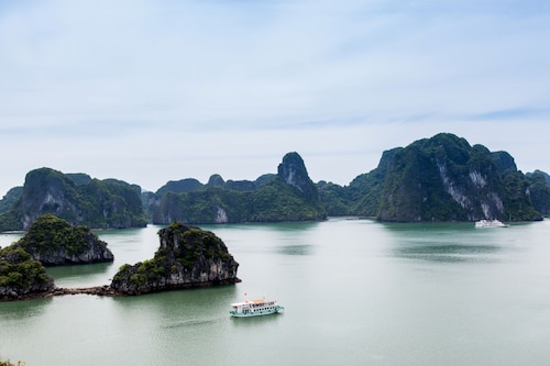 ベトナム北部のハノイから車で約2時間半の場所にある世界遺産ハロン湾は、大小およそ2,000以上の奇岩が海に浮かぶ幻想的な景勝地です。「海の桂林」とも称されるこの湾は、長い年月をかけて形成された石灰岩の台地が特徴で、龍の伝説が伝わる神秘的な場所でもあります。日帰りツアーも可能ですが、クルーズ船に宿泊すると時間とともに変化する景色をより深く堪能できます。また、新鮮な海の幸を味わったり、鍾乳洞を訪れたりすることもできます。エメラルドグリーンの海を進みながら、歴史と自然の魅力に触れられるハロン湾は、ベトナムを訪れるなら外せない観光地のひとつです。
