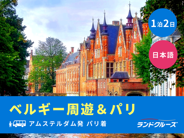 アムステルダム~パリ間を2日間で周遊する日本語係員同乗のバスツアーです。初日はアムステルダムを出発しベルギー首都ブリュッセルの市内観光、「北のヴェネツィア」と称される世界遺産の街ブルージュでは運河クルーズも。2日目はブルージュからパリへ。到着後は主要名所をバスで巡る車窓観光を楽しみ、ツアー終了となります。1名様より出発保証なので1人旅の方にも。移動を兼ねた観光や旅の行程に組み込むのもおすすめです。【Europa Mundo】
