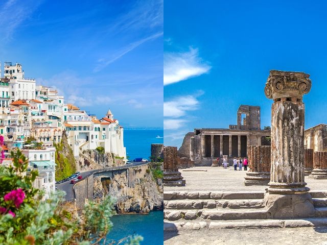 一生に一度は訪れたい世界遺産アマルフィ海岸とポンペイ遺跡を訪れる1日観光ツアーです。ナポリを出発しまずはソレント海岸〜アマルフィ海岸の絶景ドライブを堪能!途中アジェローラでは写真ストップも。アマルフィで地元料理の昼食を楽しみ自由時間を過ごしたら、ナポリへ戻りポンペイへ。火山灰に埋没したことで時が止まったように残された古代都市の遺跡を見学。1日で南イタリアが誇る美しさと深い歴史を感じる充実の旅です。