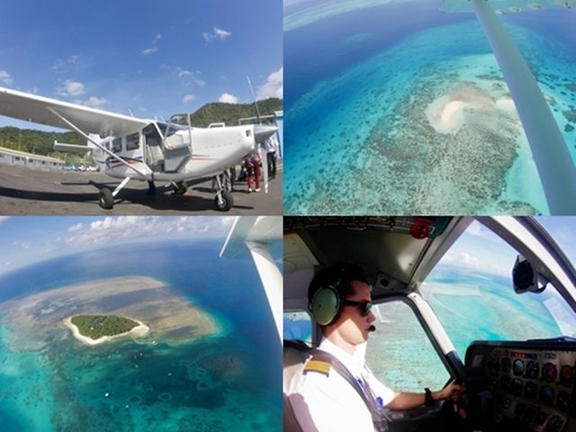リーフマジック・ポンツーンへのクルーズにお申込みの方必見!世界遺産の美しい海上空を遊覧。セスナに比べ低い高度で飛行できるので、青く光る海や珊瑚礁を間近で見ることができます。陸からはご覧いただけない絶景をお楽しみください