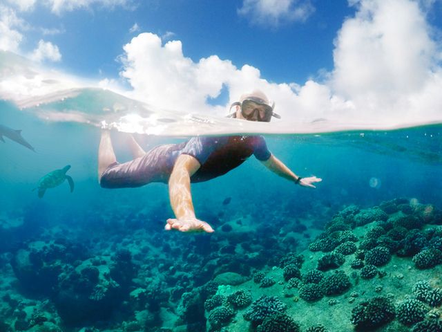 爽快ライドが楽しめるKIBOU号に乗ってハワイ島コナの海岸を出発。生き生きと泳ぐイルカや海洋生物のウォッチングの後は、その日のおすすめポイントでリーフシュノーケリング。熱帯魚と一緒に泳いだり海に浮かべたフロートで遊んだりと自由にお過しいただけます。運が良い日には、水中でアオウミガメに会えることも。たくさん遊んでお腹が空いたら、船上で焼きたてのホットドックやパイナップルのランチタイム。透明度抜群で暖かい海とハワイ島の自然の中で思い出に残るお時間をお過ごしください。ご予約はこちら。