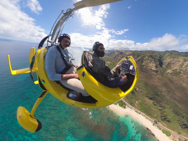 話題の乗り物「ジャイロプレーン」で、他ではできないハワイの飛行アドベンチャーを体験してみませんか?ノースショアのサーフィンの名所や、遠くにそびえ立つハワイの山々を眺めながら、一生に一度の空の冒険をお楽しみください!