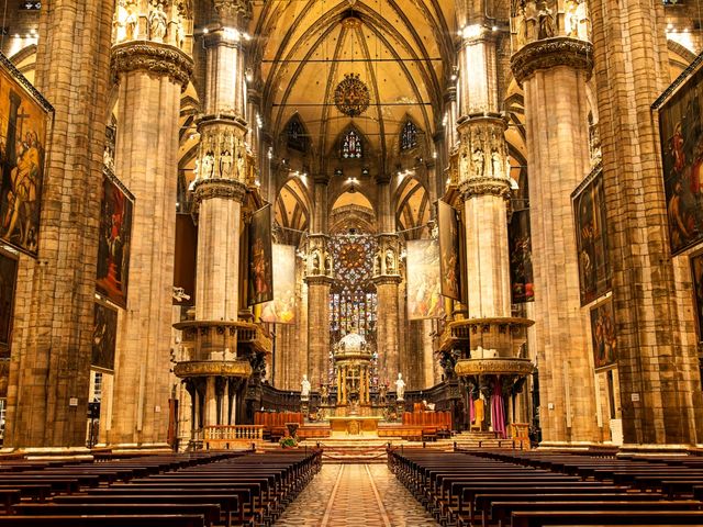 ミラノのシンボル、ドゥオーモ(ミラノ大聖堂)の内部見学ツアー。優先入場でチケットの行列をパスしスムーズに入場し、公認ガイドが数多の彫像、美しいステンドグラス、「聖なる釘」の物語など隠された歴史を解説します。1時間でサクッと大聖堂内部見学のみのプラン、絶景を一望する屋上に入場できる2時間のプランの2種からお選びください。