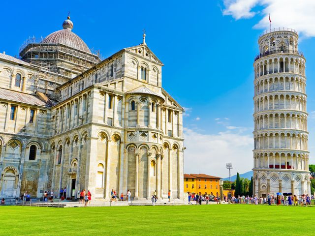 フィレンツェ発!「ピサの斜塔」で有名な街ピサを半日で巡るツアー。ピサの斜塔へ入場し、塔をのぼることも!ツアーなら事前予約でスムーズに入場できます。斜塔以外にもロマネスク様式の代表作であるドゥオモや洗礼堂などピサの見どころを日本語アシスタント同行で回ります。