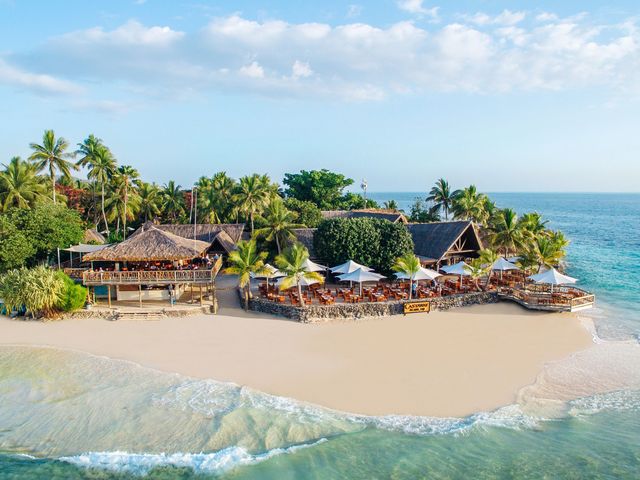 青い空と青い海に白いパラソルが映えるキャスタウェイ島で過ごす1日。島ではプールでのんびり泳いだり、シュノーケリングを楽しんだり、自由にお過ごしいただけます。高速カタマラン船での移動中はママヌザ諸島の他の島々の景色をお楽しみください。