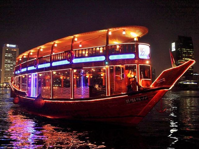 アラブの伝統的な木造船“ダウ”で夜景クルーズはいかがでしょう。旧市街の運河でゆったりとアラブと西洋のバイキングディナーを楽しみながら、ライトアップされたスークや建物が美しい光輝くドバイの夜景をご覧ください!