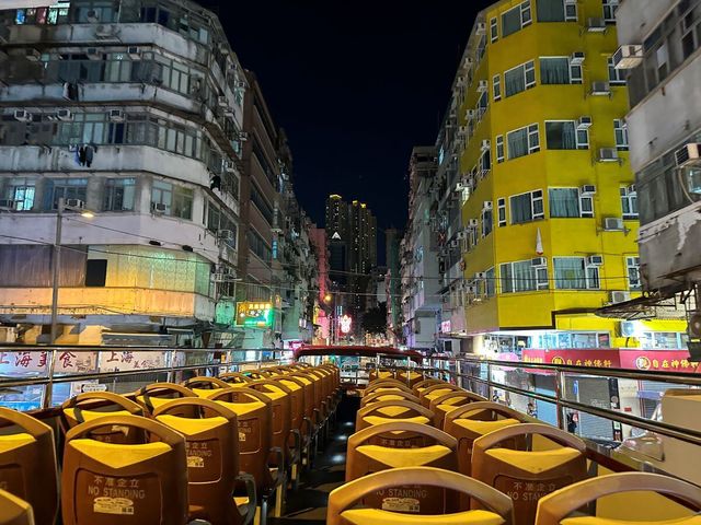 夜の香港を巡る、迫力満点のオープントップバスツアー!360度見渡せるオープントップバスより、香港の高層ビルからレトロな街並みまで魅力的な風景の数々をご覧ください。解散場所はナイトマーケットが開催されているテンプルストリート。そのまま自由散策を楽しめます!香港が初めてという方にもおすすめなツアーです。