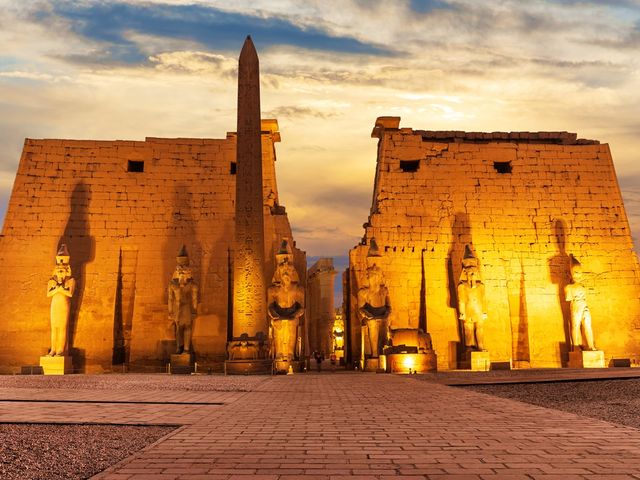 古代都市テーベ時代に建立されたエジプト遺跡、ルクソール神殿のナイトツアー!光に照らされライトアップした姿は、昼間とはまた違う美しさで心惹かれる光景に変わります。幻想的な雰囲気に包まれながら、日本語ガイドの解説で古代エジプトの歴史を辿ります。