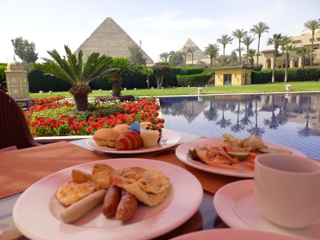 世界遺産ギザの3大ピラミッドを仰ぎ見る「マリオット・メナ・ハウス」は、世界中の国家元首や著名人をもてなしてきた創業100年を超える5つ星クラシックホテル。クフ王のピラミッドが目の前に迫るメインダイニング「139レストラン」にて、優雅な朝食をお楽しみいただけます。アメリカンブレックファストのビュッフェをご堪能ください。日本語アシスタント同行&ホテル往復送迎付なので安心!朝食に加えて、ギザ観光とランチがついたプランもおすすめです!