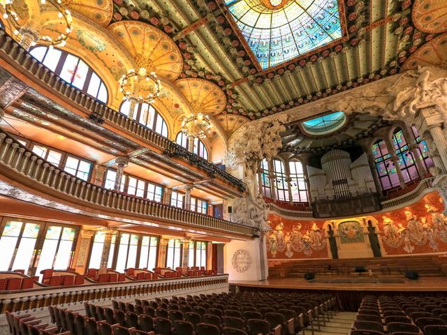 世界遺産カタルーニャ音楽堂はモンタネールによって設計されたモデルニスモ建築の傑作。溜め息が出るほど美しい装飾の内部見学はガイドツアーへの参加が必須。現地では売り切れだったなんてことも。日時指定の事前予約がおすすめです。