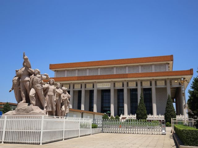 北京の天安門広場にある毛沢東の廟「毛主席紀念堂」。建物の中には防腐処理の上で保存された毛沢東共産党初代主席の遺体が安置されており、拝礼できるようになっています。