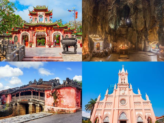 古き良き街並みが世界遺産に指定されているホイアンを観光!散策後は街を360度見渡せることで話題のカフェも訪問します。昼食は鶏の旨味たっぷりのチキンライス「コムガー」を含む、ホイアン四大名物料理などをご賞味ください。ダナン観光付きプランでは、ピンク色の大聖堂やパワースポット五行山へご案内!麺料理「ミークアン」などの夕食や、マッサージも含まれる充実の1日です。