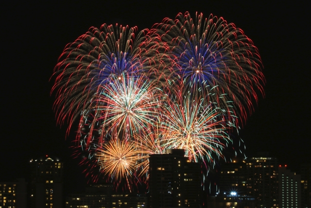 海上から見る花火とホノルルの美しい夜景は、忘れられないハワイの思い出になります。