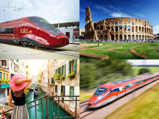 ヴェネチア・サンタルチア駅〜ローマ・テルミニ駅の列車の事前予約サービスです。イタリアの高速列車「Frecciarossa」または「Italo」をお手配します。予約確定後は乗車チケットのデータをメールでお送りしますので、当日は印刷したチケットを提示し乗車するだけ。Wifi完備の快適な車両で、飛行機よりも手軽&車よりも高速にヴェネチア〜ローマ間の移動が叶います。ヴェネチアからローマへの移動なら、気軽でスムーズな列車がおすすめ!