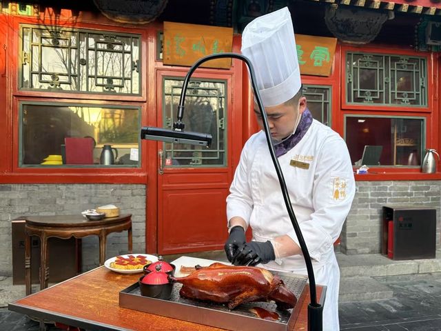 南北の料理を融合させた「新京菜」を提供し、看板メニューの「八爺(バーヤ)ダック」はシェフがナツメの木の焼き炉で調理し、テーブル前で切り分けるパフォーマンス付き。鴨の皮はサクサクで光を透かすほど。その他「京八件(ジンバージェン)」「覇王獅子頭(バワンシーズトウ)」など、匠の技が光る名菜が揃います。