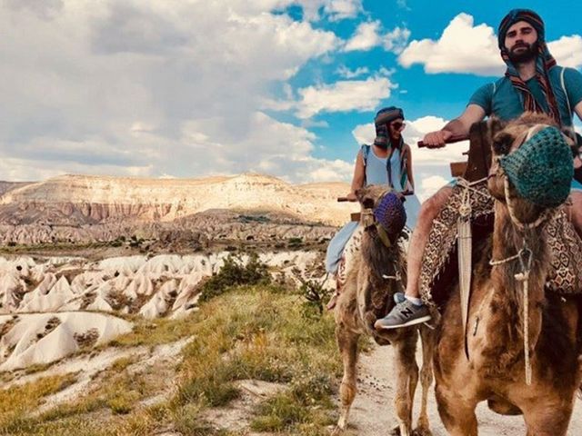 カッパドキアの美しい景色をラクダに乗って探検するツアー。壮大な自然の中でラクダで巡る体験は、一生の思い出になること間違いなし!サンライズやサンセットの時間帯には幻想的な風景を楽しむこともできます。