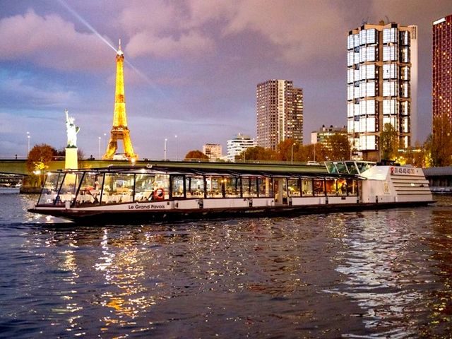 セーヌ川クルーズの代名詞的存在、バトー・ムッシュ。ガラス張りの船内から眺めるセーヌ川河岸やパリの街並と共に本格フレンチディナーを堪能!日本語メニューもあり前菜やメインを豊富な種類から選べるのも嬉しいポイント。日没後毎時0分のエッフェル塔「シャンパンフラッシュ」もお見逃しなく!