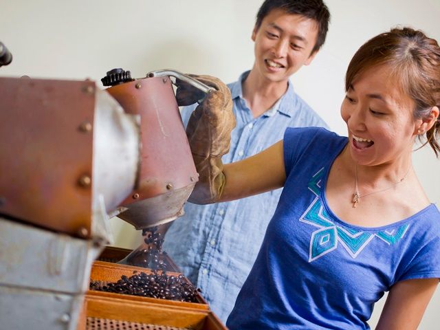 UCCハワイで奥深い生豆の焙煎体験!毎年訪れて持ち帰るリピーターもいます。ユニークな酸味とコク、そして焼きあがった後の芳醇な香りを堪能ください。