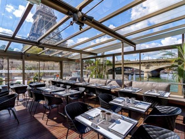 パリのシンボル、エッフェル塔のすぐ下にあるビストロ・パリジャンはトロカデロからも近く、抜群のロケーションです。エッフェル塔観光やセーヌ川クルーズの前後での利用がとても便利で、人気のある水上ビストロとなっています。