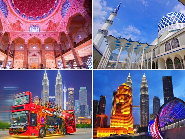 クアラルンプール観光の定番、ブルーモスクとピンクモスクを午後から効率よく巡ります。観光後はローカルグルメが集まるアロー通りで自由に食べ歩き。夜は大人気のオープントップバスに乗車し、KLタワーやペトロナスツインタワーなど、クアラルンプールを代表する夜景スポットを爽快なナイトドライブで満喫します。