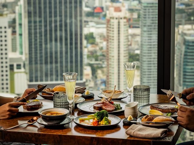 バンコク屈指のラグジュアリーホテル、ウォルドーフ・アストリア・バンコクの55階に位置する「Bull & Bear」で、週末限定のサーフ&ターフ・セミビュッフェを堪能!生牡蠣やイベリコハムをはじめとする前菜、極上ステーキ、多彩なスイーツまで、贅沢な美食が勢ぞろい。眼下に広がる絶景とともに、至福のひとときをお楽しみください。