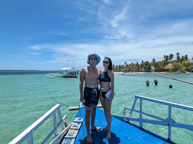 セブ島の大人気アイランドホッピングツアー!ナルスアン島、ヒルトゥガン海洋保護区、カオハガン島の3スポットを巡る1日ツアーです。透明度抜群の海でシュノーケリングを楽しんだ後は、船上でフィリピンBBQランチを満喫♪日本語ガイドのサポート付きで快適な旅をお楽しみください!