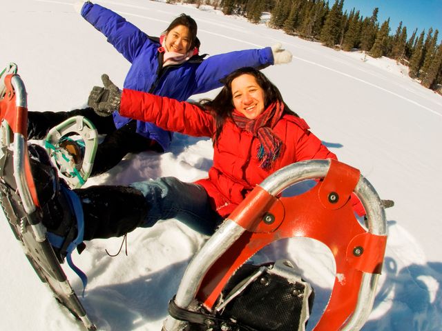 静かなユーコンの原野を体験できるツアーをお探しならスノーシューがオススメ。現代版の軽いスノーシューをはいて、昔の罠猟師や毛皮商人たちが旅したように、極北の大自然を肌で感じてみませんか?英語ガイドまたは初心者の方でも安心の日本語ガイドの選択が可能です。