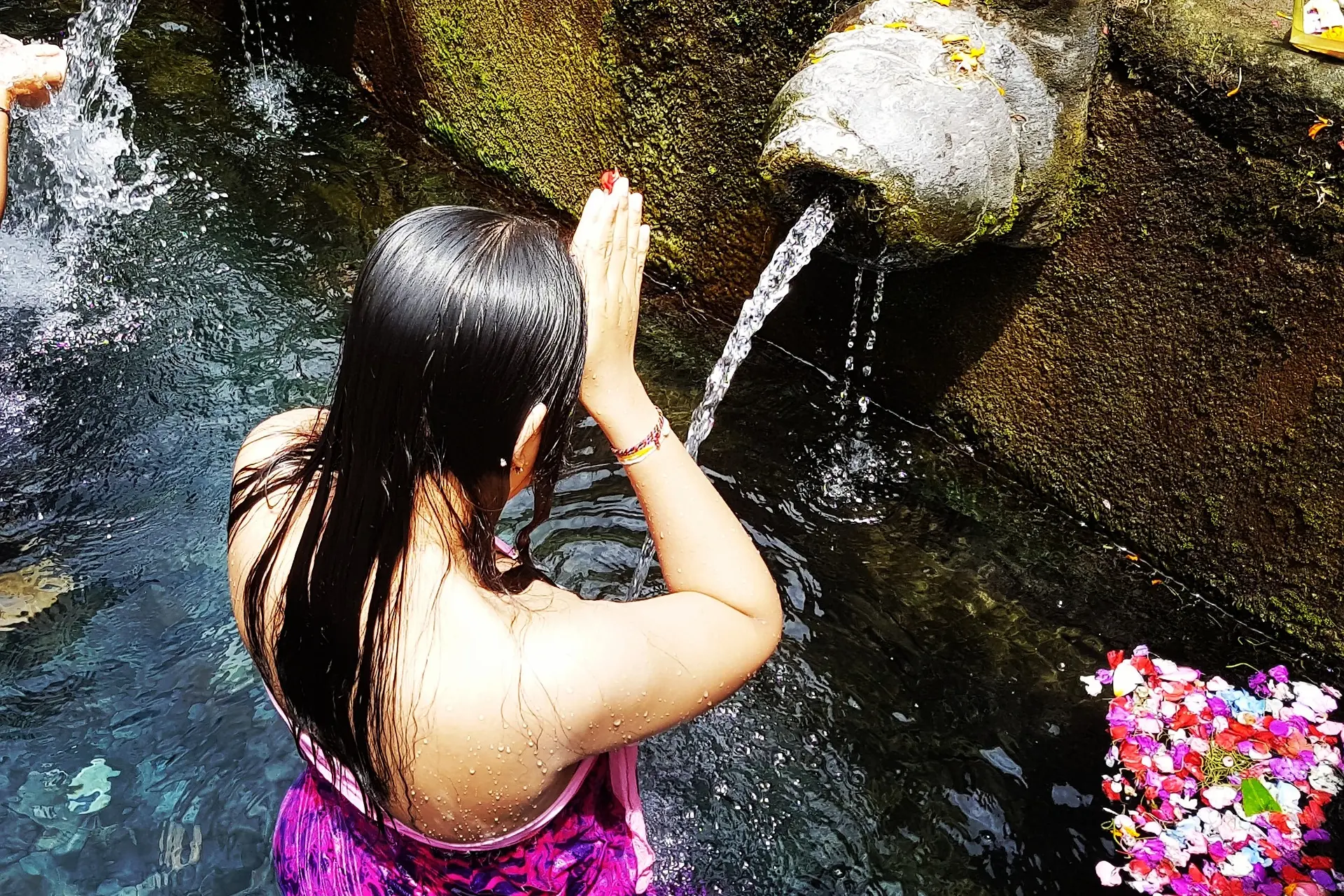 バリの人々に根付く信仰心を感じ、共に沐浴(ムルカット)体験。
