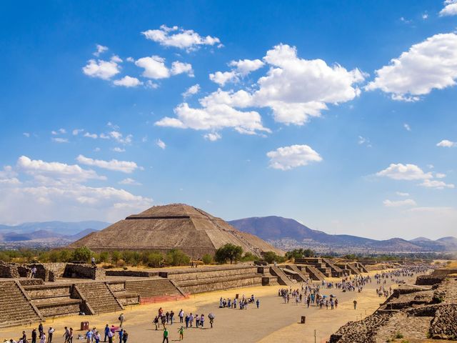 テオティワカンへの優先入場チケット。ユネスコの世界遺産であり、メキシコの重要な遺跡の1つとして親しまれる巨大な宗教都市遺跡を訪ねてみませんか。9:00~15:00の間のお好きな時間にアクセスできるので、マイペースかつ自由に見学をお楽しみいただけます。